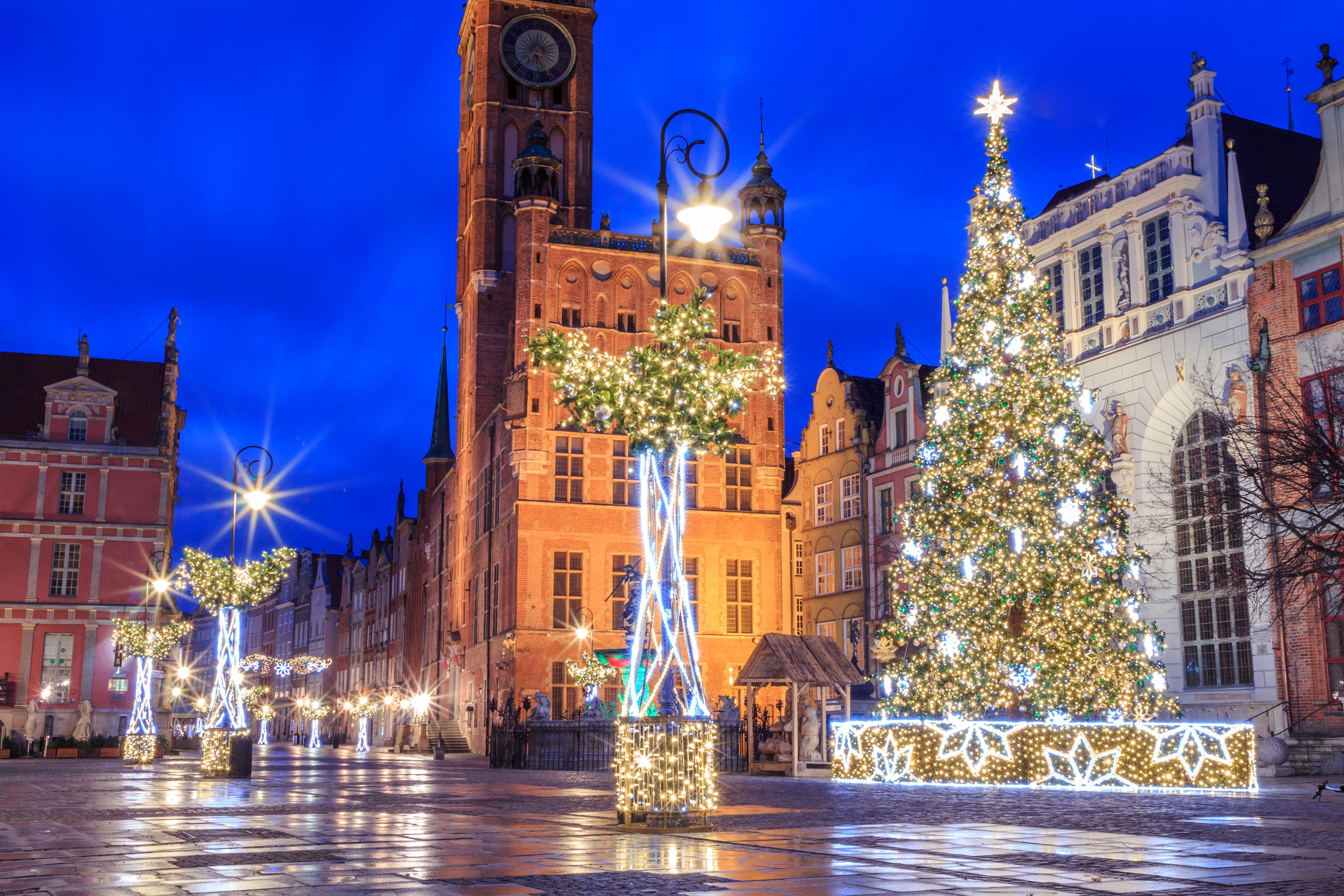 Kelionė per Lietuvą ir Lenkiją link Gdansko. Atvažiuojame į Gdanską. Ekskursija pradedama nuo Gdansko senamiesčio – praeisime Karališkuoju traktu, vedančiu pro svarbiausius miesto vartus. Tarp Aukštųjų ir Auksinių vartų, iki Žaliųjų vartų gausu renesanso stiliaus viduramžiškų pastatų: pirklių brolijos „Artūro“ rūmai, Neptūno fontanas, Aukso namai, Rotušė, viena didžiausių Europoje plytinė ankstyvosios gotikos stiliaus Šv. Mergelės katedra*(14-16 a., garsi astronominiu laikrodžiu, kuris įrengtas dar 15 a.) ir kt. Pagrindinė Senamiesčio gatvė – Ilgasis turgus (Dlugi Targ), šv. Marijos gatvelė – unikalios Gdansko architektūros kampelis, žavintis išraiškingais namų priebučiais. Judri Motlavos krantinė – mėgstama turistų ir vietinių pasivaikščiojimų vieta, čia matysime ir Gdansko simboliu laikomą kraną „Žurav“. Po ekskursijos – laisvas laikas kalėdinėje mugėje.